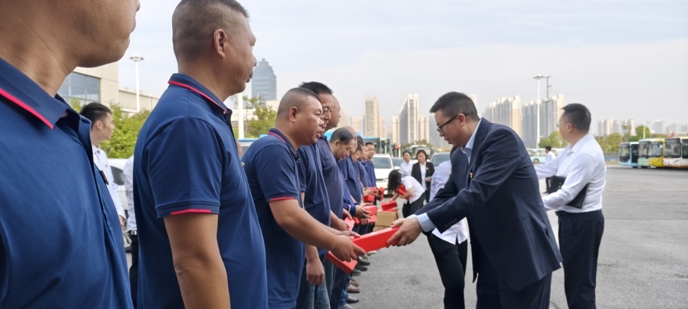 圖/市司法局黨委委員、副局長周永懷同志向公交集團(tuán)職工贈送了“紅雨傘”